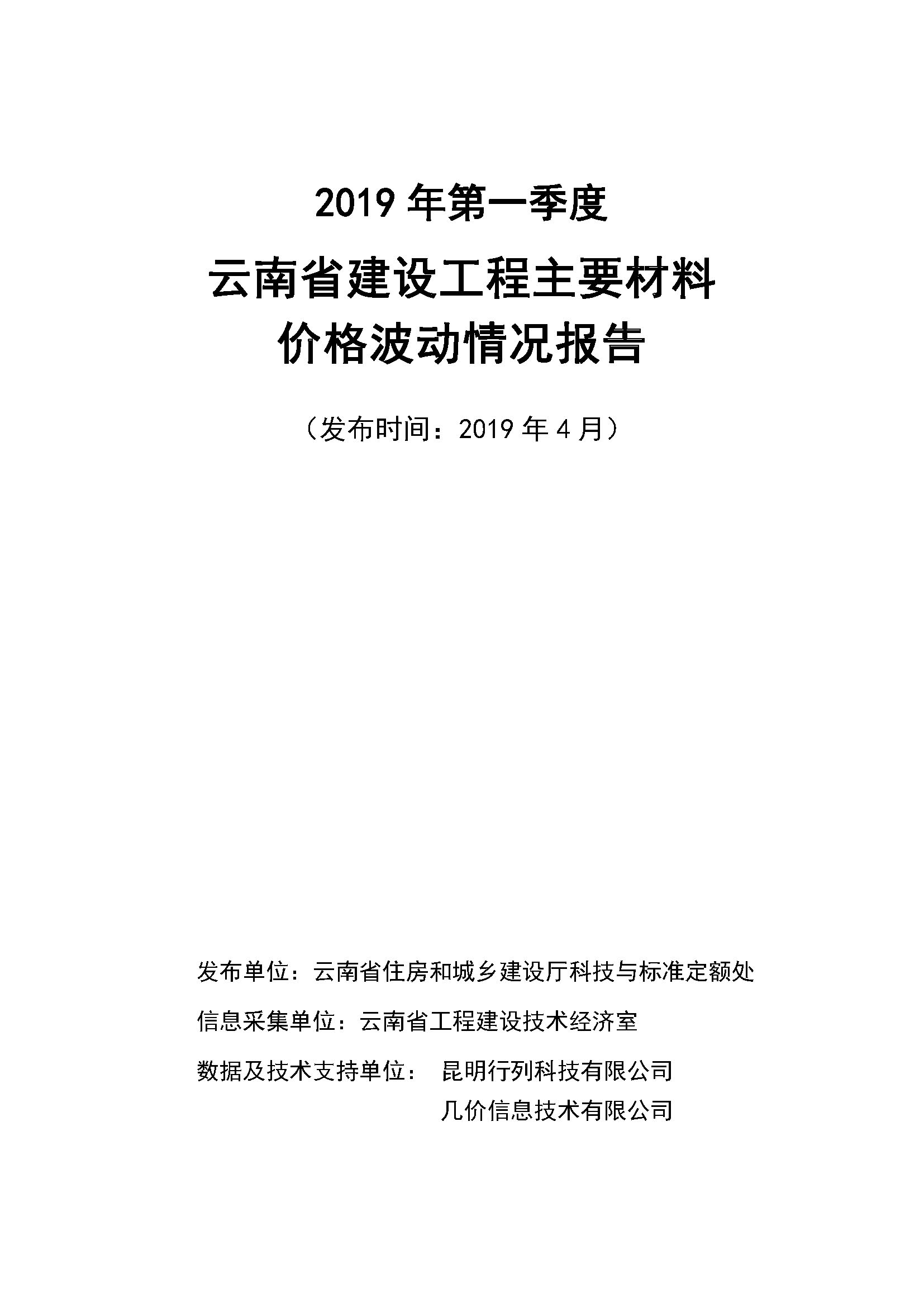 云南省建设工程主要材料价格波动情况报告-2019年第一季度