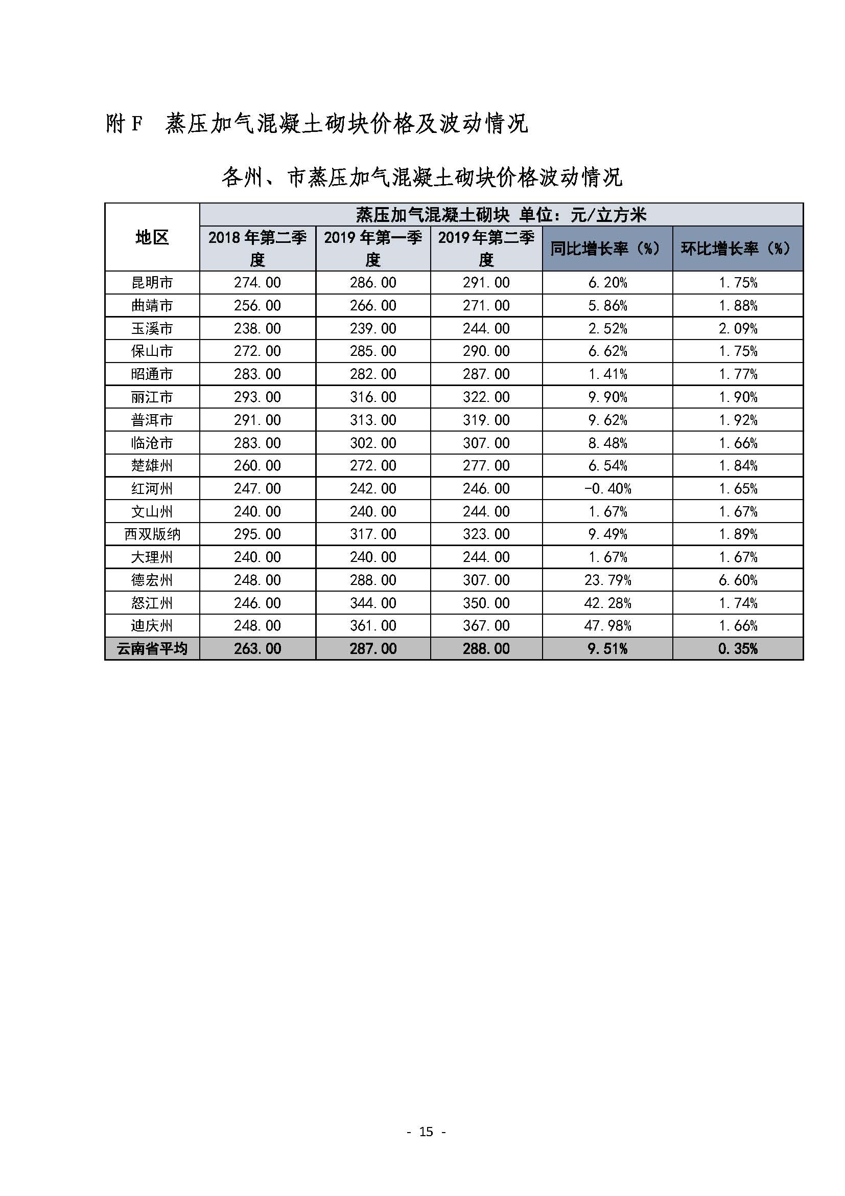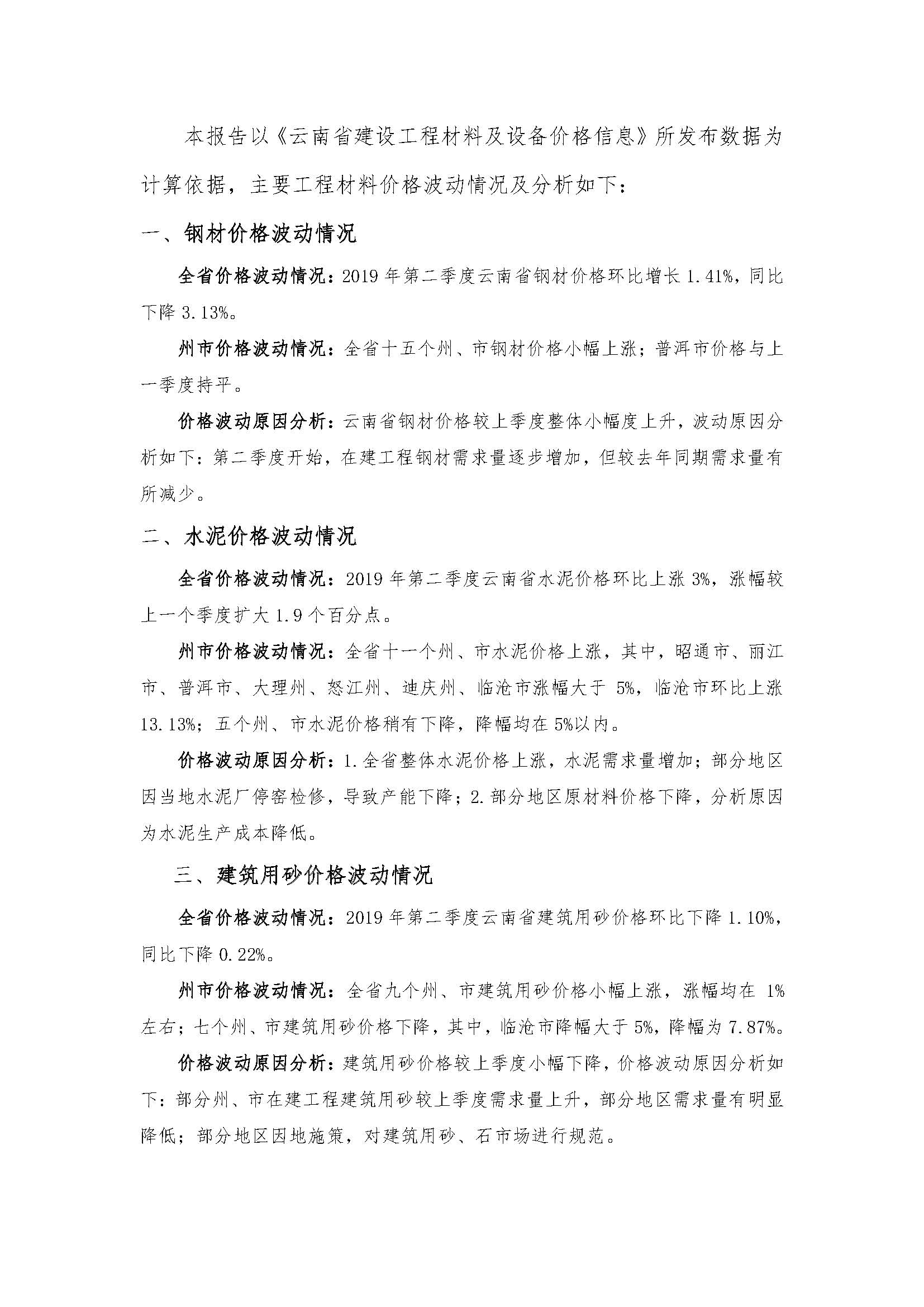 云南省建设工程主要材料价格波动情况报告-2019年第二季度